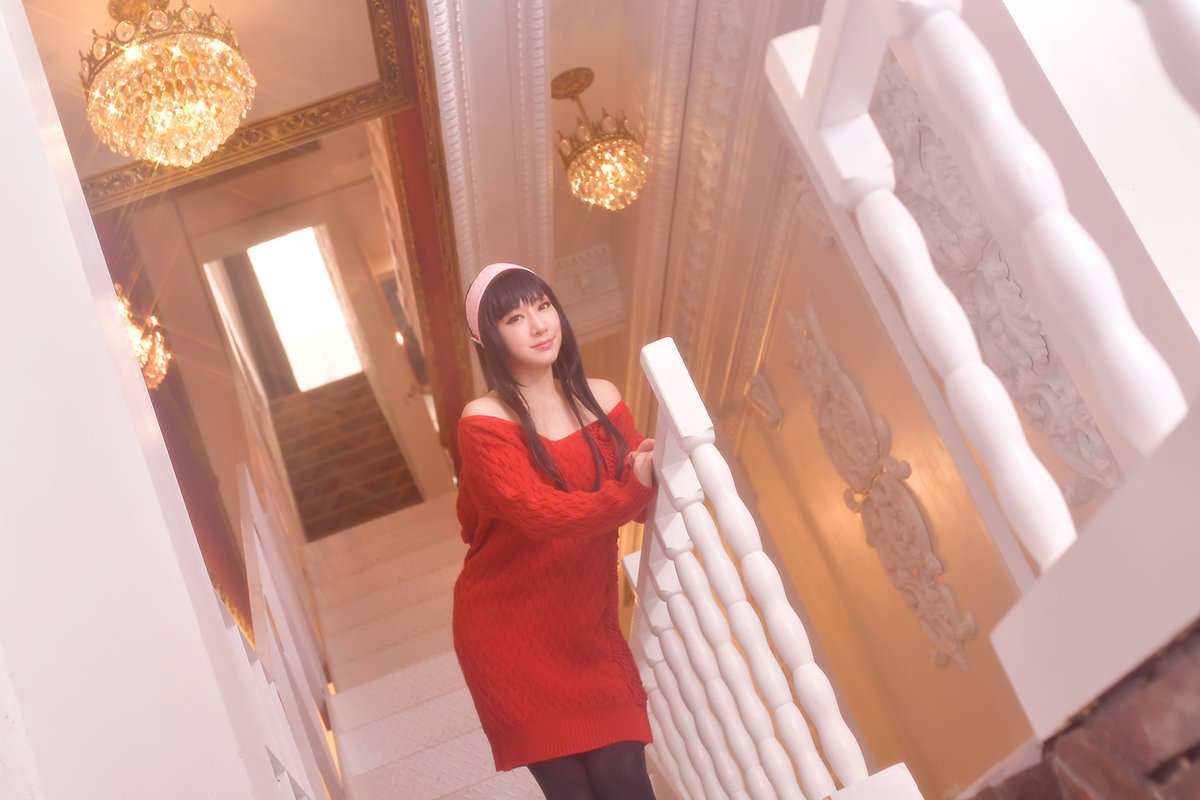 日記人<nikinin> おもしろまんが「SPY×FAMILY」が今日からアニメ放送と云う事で、今までに撮った写真をカウントダウン的にUPしていく~ 6日目(・ω・)/ 明鈴さんのヨルさんの普段着! 白亜の邸宅に鮮やかな赤が映えるよ姉さ~~ん! #スパイファミリー #SPY_FAMILY #コスプレ