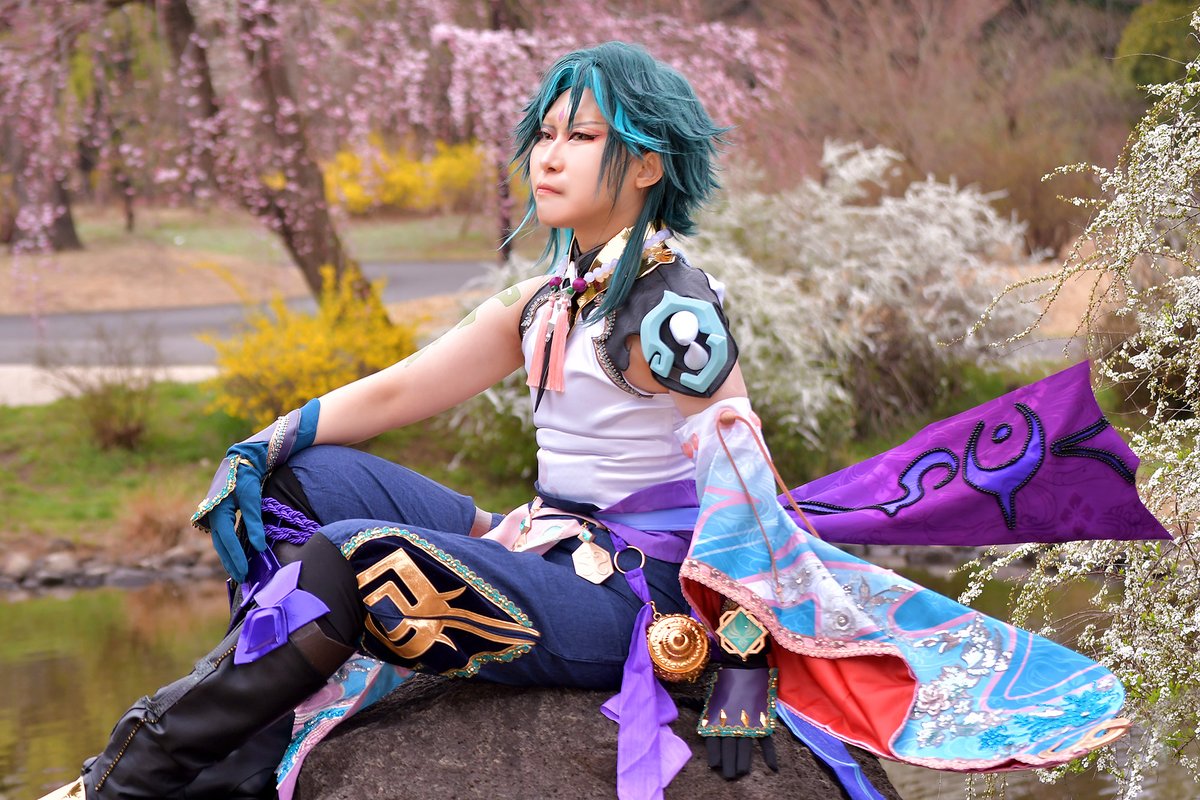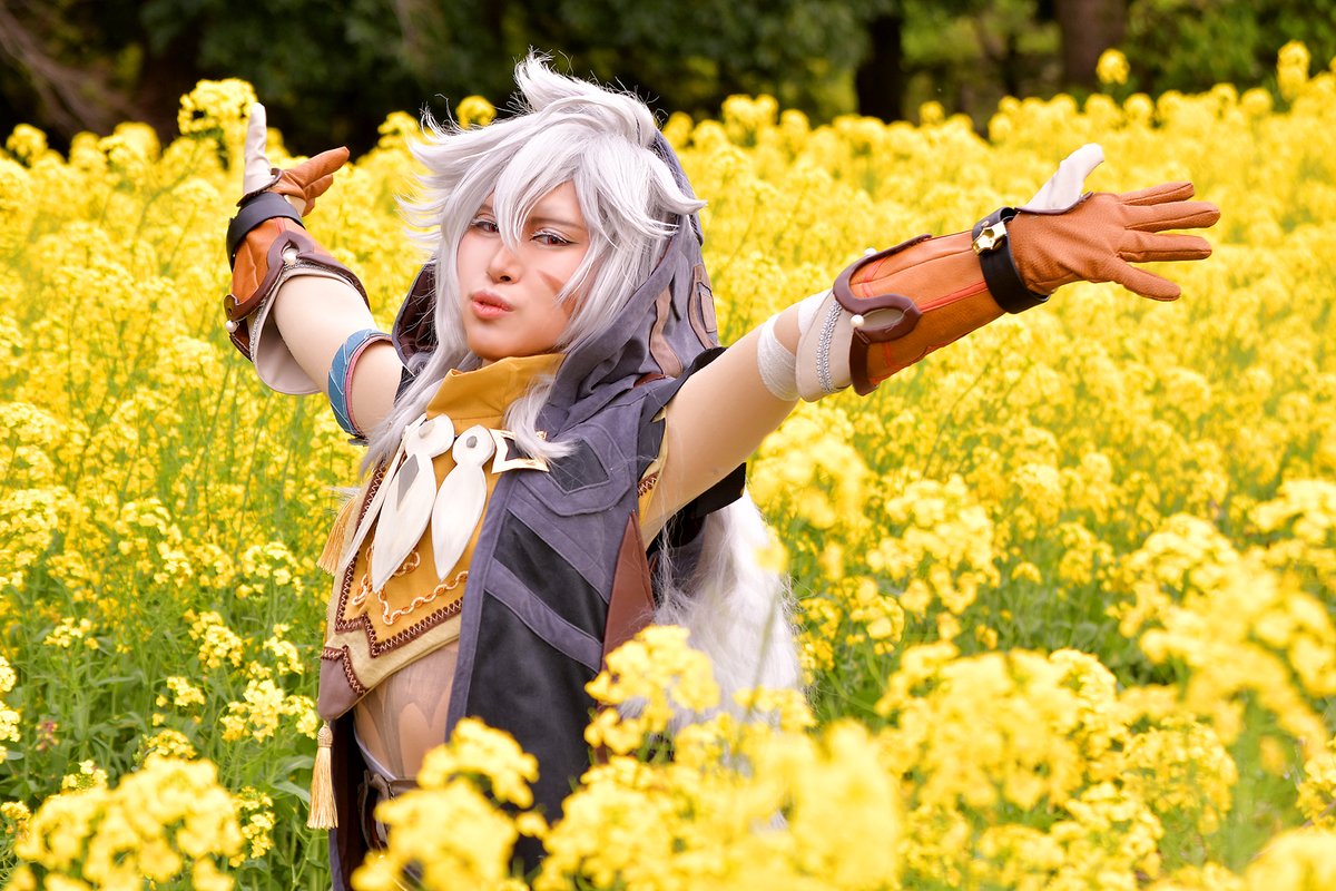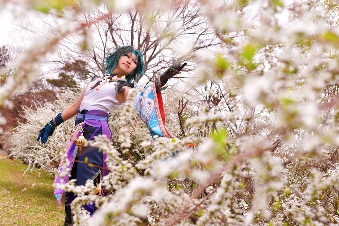 ちょいおそくほう~(・ω・)/ 先日、弥一さんから依頼受けて、早春の某公園で原神の「魈」を撮って来たよ~! 3月に入ってからの急速な気温上昇で、想像以上に色々な花の開花が進んでいて、花囲み撮影ができて僥倖😆 #原神cosplay #魈