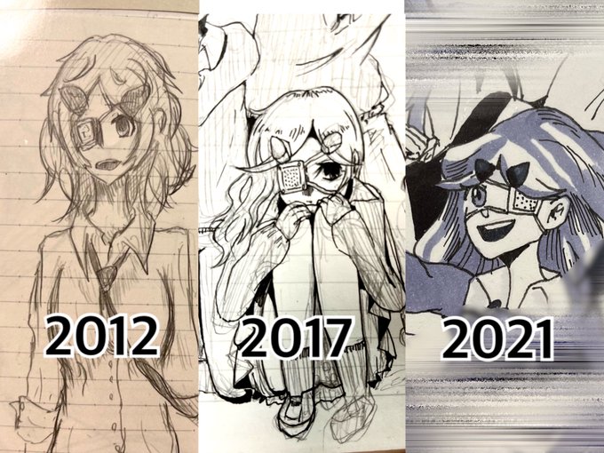 #画力変化ビフォーアフター #オリキャラ の成ちゃんで! #創作 #一次創作 #うちの子 #イラスト #創作クラスタさんと繋がりたい 一旦迷走してるしなんなら眼帯が逆