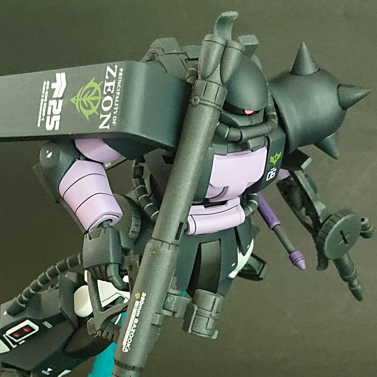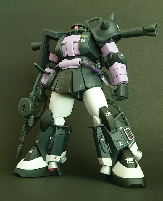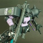 高機動型ザクII(ガイア機)の画像を撮り直ししました。 シールドのキシリア部隊マークは失敗したので左胸に小さいのを貼りました。ラッカー筆塗りです。 #ガンプラ #HGUC #黒い三連星