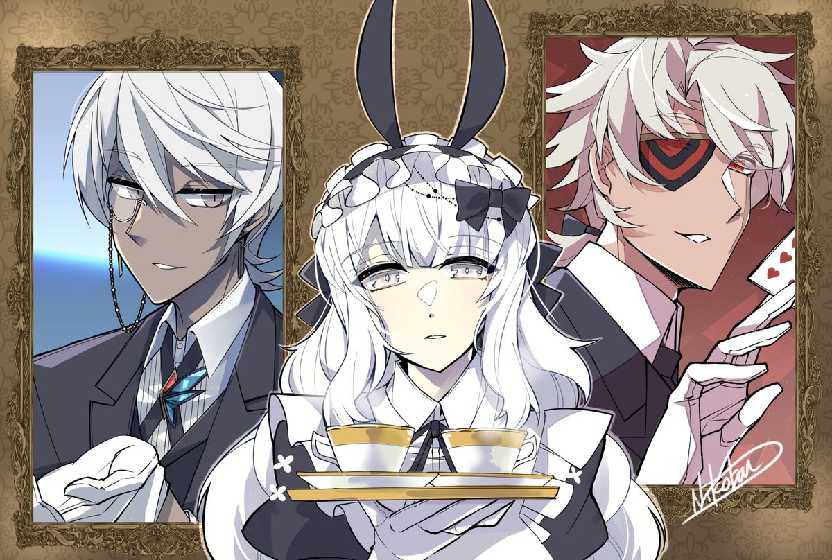 初コラボイベントおめでとうございます🎉🐉 光霊ファンアート部門に参加します!!!!!!執事&メイドの針ッッ Corax, Cuscuta, Taki Master assassins' maid & butler style #白夜さんちのメイドラゴン #白夜極光 #AlchemyStars