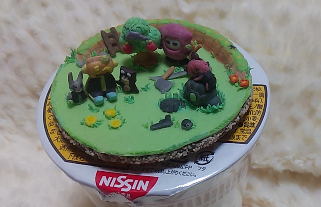 カップめんのフタを押さえるには…ちょっと小さく作りすぎたかぁ……? #bintrollFA