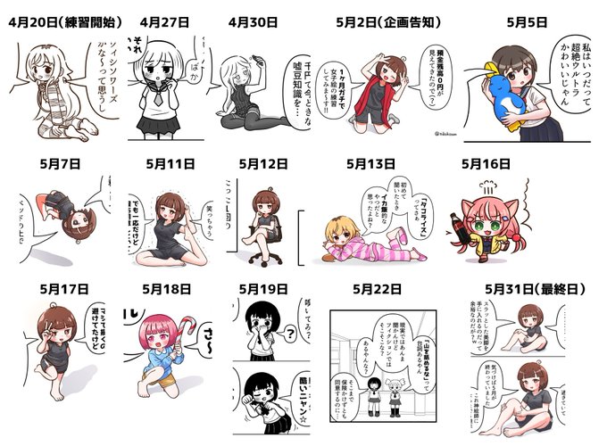 女子絵スーパー強化月間完了ということで、全体公開で総括記事を書きました!! ついでに全部じゃないけど描いた絵も1枚にまとめました nikokosan.fanbox.cc/posts/3901339 #今月描いた絵を晒そう