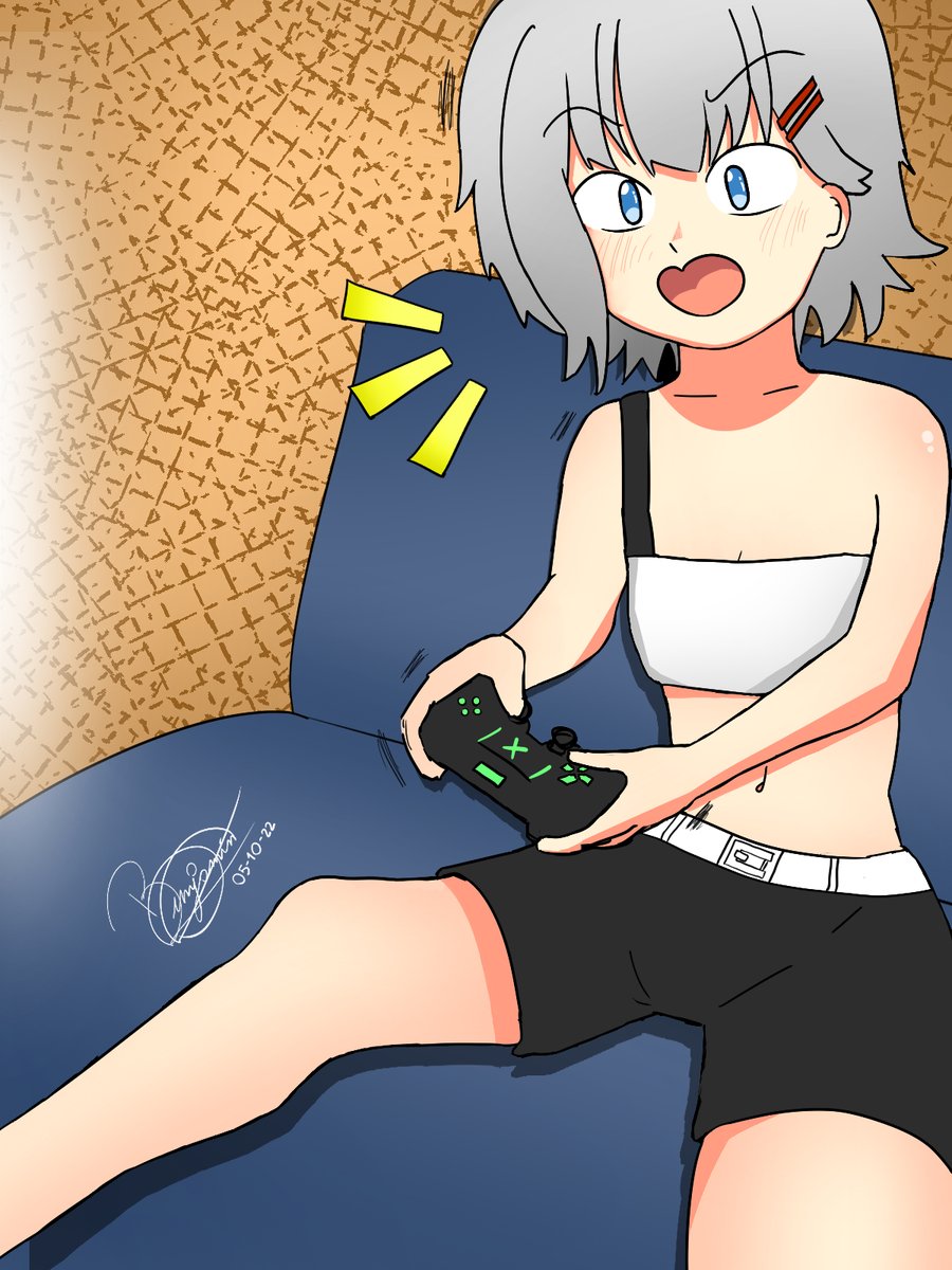 Este día #5 del #inktober2022 toca hacer #rurinktober de Lunita sobre juegos, así que se me ocurrió hacer algo sencillo, a la Lunita bien chill jugando en el sofá #rurillust