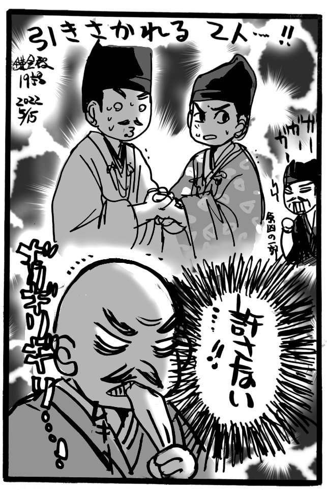 54 217 19話義経くんがどんどん追い込まれてゆく…兄ちゃんもそれなりに頑張っていたのに邪魔があれよあれよと…二人は手を取り合うことさえもできなかったのナレについある意味三角形。ゴッシーと叔父〜は💢💢 #鎌倉殿の13人 #殿絵 22/05/15 20:50