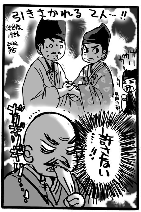 582 3696 33話。一幡と善児のあちらの世界線。ブランコ作ってって台詞も入れたかったけど鎌倉時代のブランコは何と呼ぶのだろう。#鎌倉殿の13人 #殿絵 22/09/02 17:50