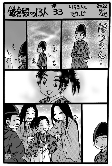 32話。仁田殿の残酷すぎる選択がしんどいので楽しかった三嶋大祭り含めたネタを描きました 。や、結局しんどいんですが… #鎌倉殿の13人 #三嶋大祭り #殿絵