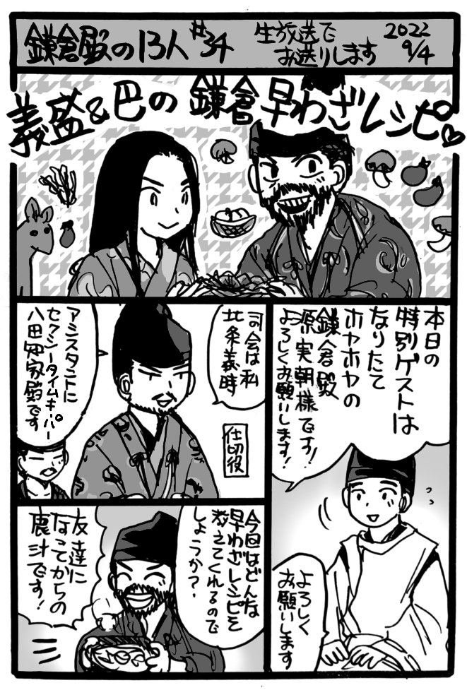 34話からの概念ネタ。和田&巴の掛け合いが微笑ましかった。鍋シーン癒やされました。早わざレシピは毎回神回…あれを生放送してるの凄いよ…。#鎌倉殿の13人 #殿絵