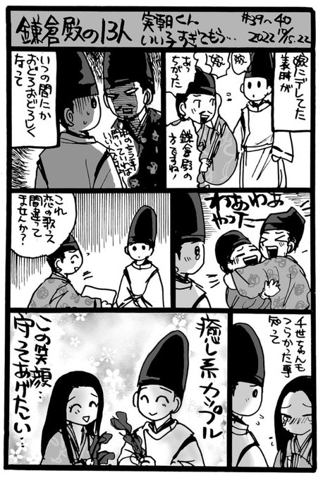 145 748 39と40話。実朝くんいい子すぎて切ないけど和田くんの件の後は変わってゆくのかな…。千世ちゃんとは穏やかに過ごして欲しい #鎌倉殿の13人 #殿絵 22/10/27 20:08