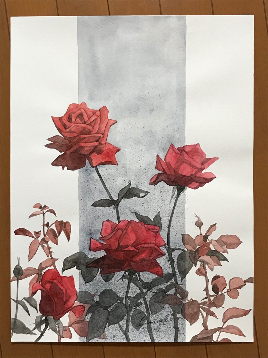 1 0 今日のお絵描き #バラ #水彩画 22/08/26 06:08
