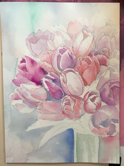 制作途中 #水彩画 #透明水彩画 #チューリップ
