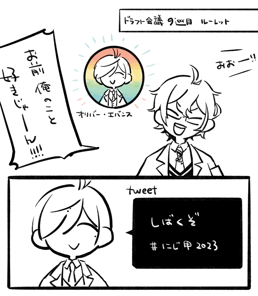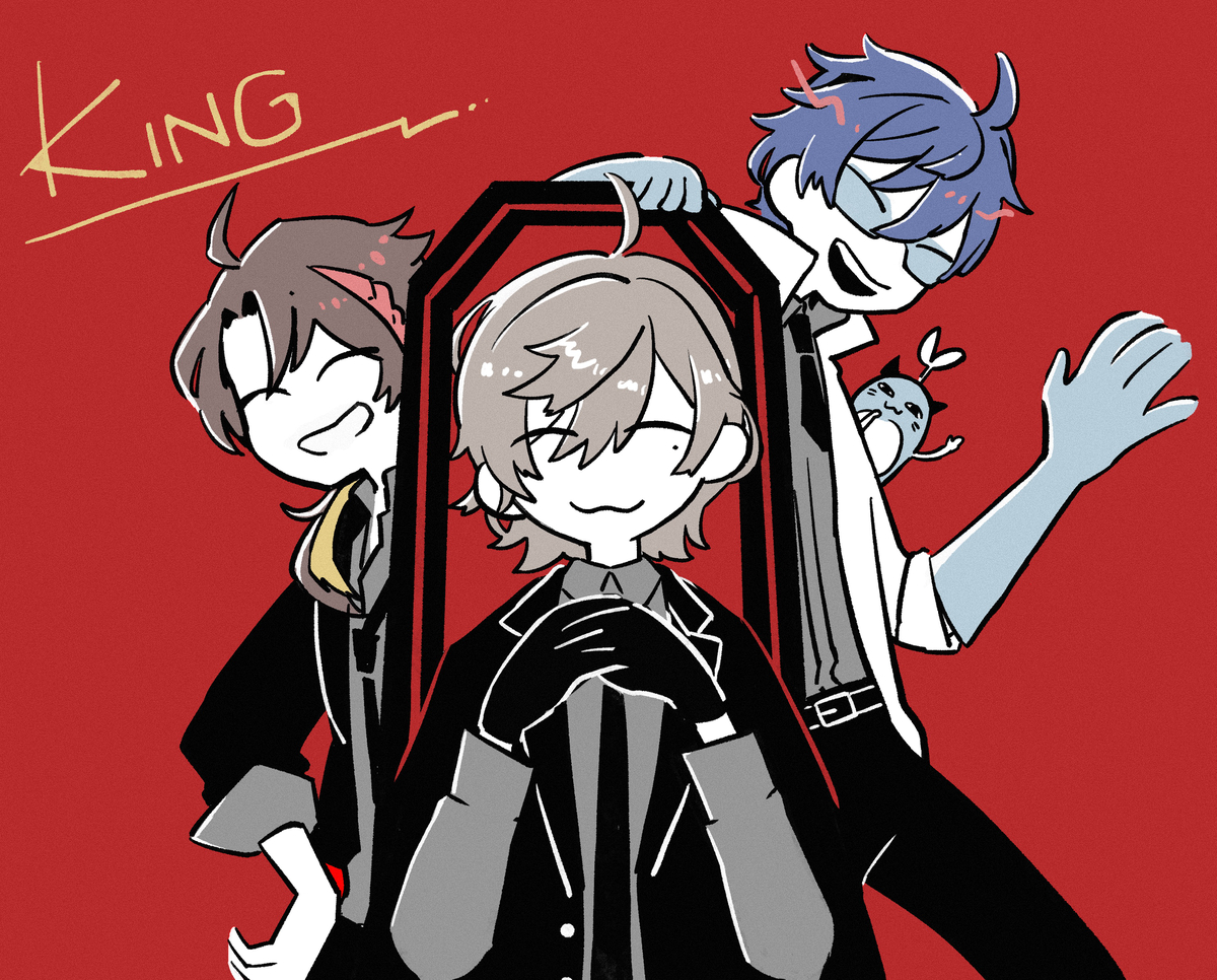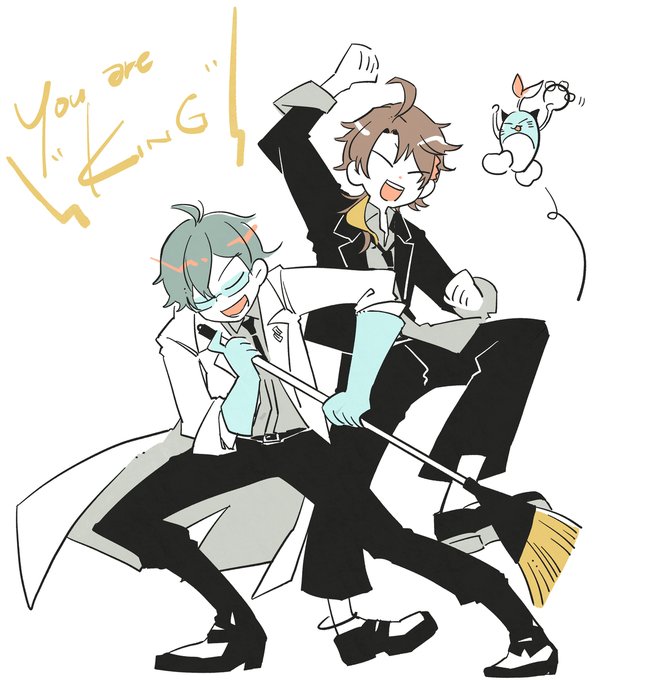 95 710 我ながらどんな世界観かわかんないけどなんかモブ(雑)が「1人の時を狙えー!」って生徒会室に乗り込んだら、会長の椅子の後ろから「うちの会長に何か〜?」って2人が出てくるシーンが浮かびました。直後3人開眼。たのしい… #七次元掲示板 #まめねことレオス #さ絵ぐさ 23/06/22 17:33