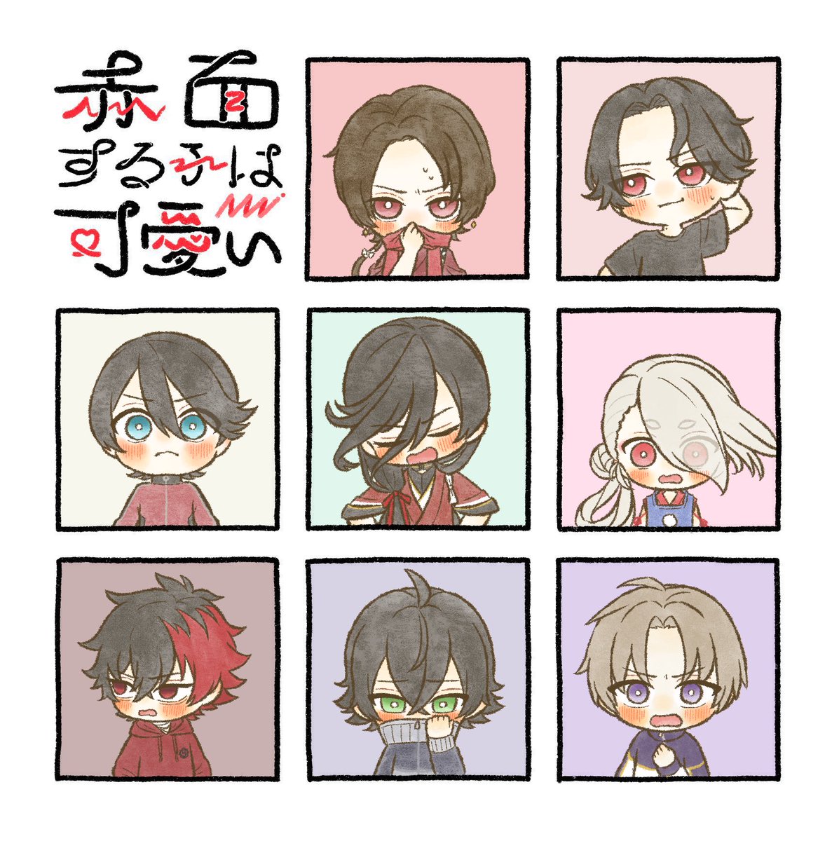 #フォロワーさんの推しが描きたい 本当に本当にお待たせしました!! みっちゃん、父、からちゃん、清光、堀川くん、清麿、くわわ、膝丸、明石です!中段の子以外初めて描いた!!!!!お納めください!!!!! 次は赤面の子は可愛いテンプレ埋めます!!お待ちくださいませ!!! twitter.com/niku_party_/…