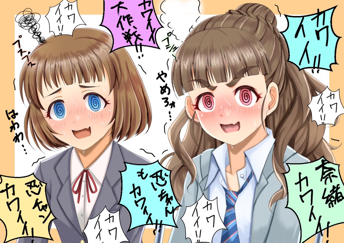 撮影中に他愛のないおしゃべりをしているだけの海老原菜帆さんの健全なイラストを描きました。