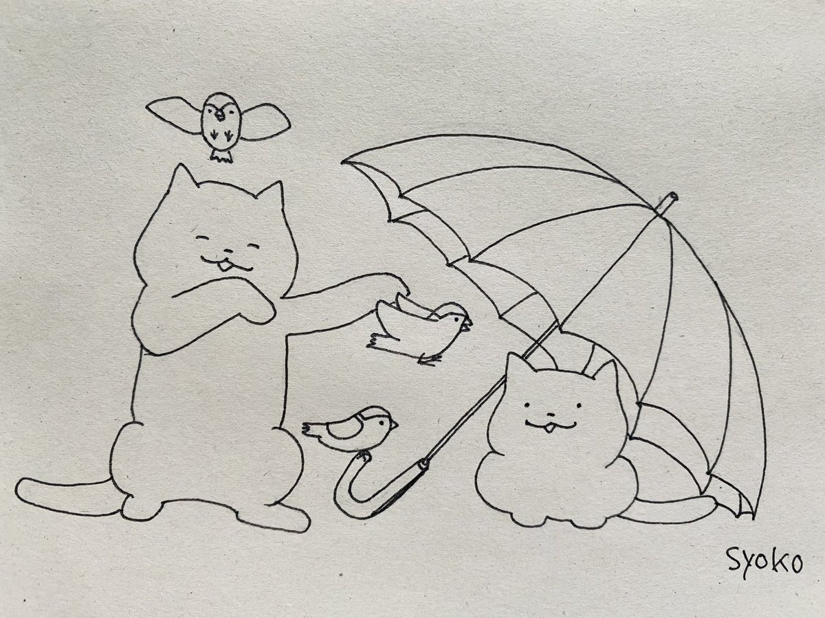 #猫 #すずめ #イラスト 一緒に過ごすと楽しいんだ!