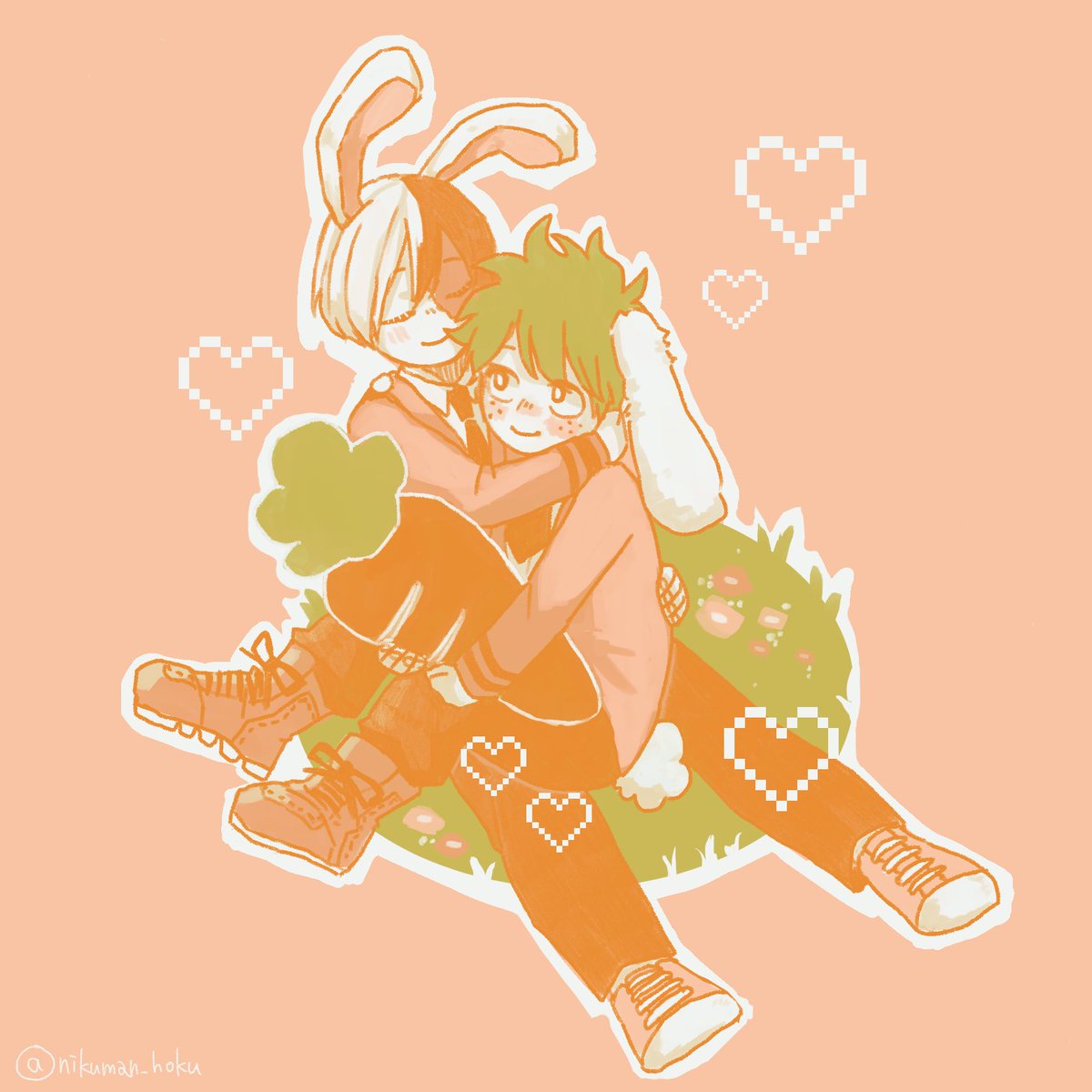 以前こちらでリクエストいただいた、 18番のカラーパレットでtdizです🍰🥦🐰🥕🥕🥕 寂しくなったら死んじゃうからずっとくっついてそう #tdiz #轟出 twitter.com/nikuman_hoku/s…