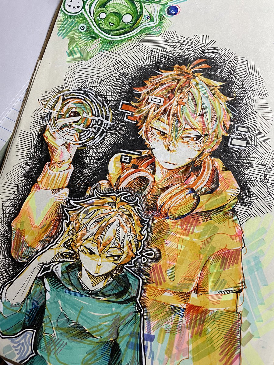 messy sketch of the boat boys! looking forward to seeing what sorts of shenanigans they get into :V #doublelifefanart #smallishbeansfanart #ethoslabfanart