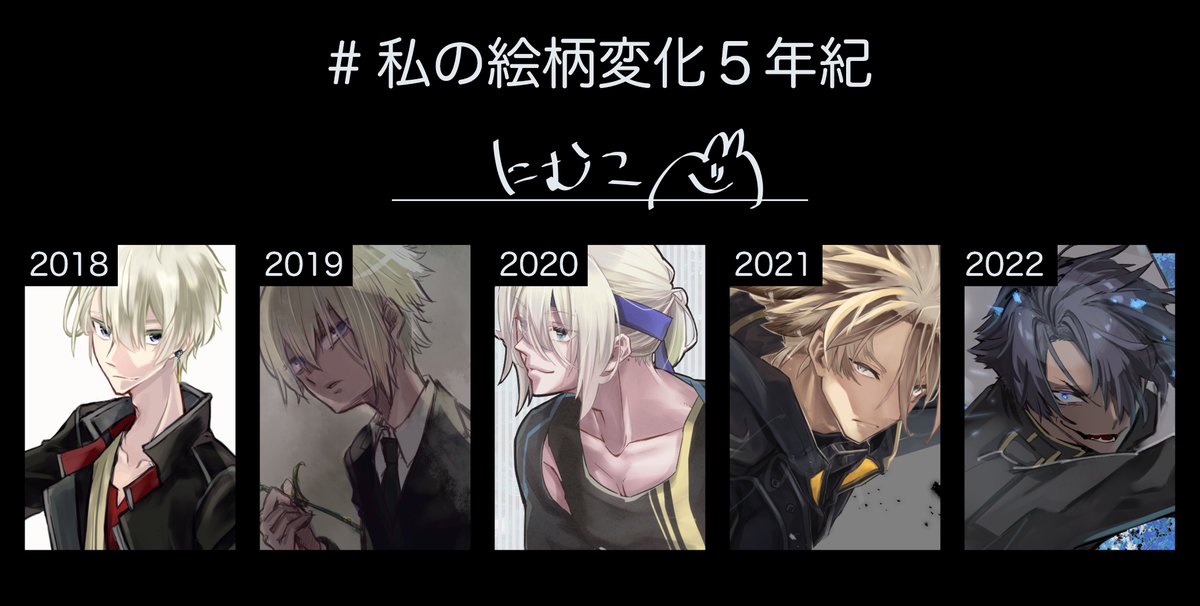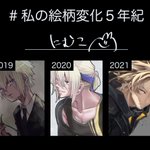 4 25 #私の絵柄変化5年紀 5年前は5年前でめちゃくちゃかっこよく描けた!!!!!って思ってたものですが!!!!!!!!今見ると恥ずかしいんですわ!!!!!!!! 22/04/05 00:31