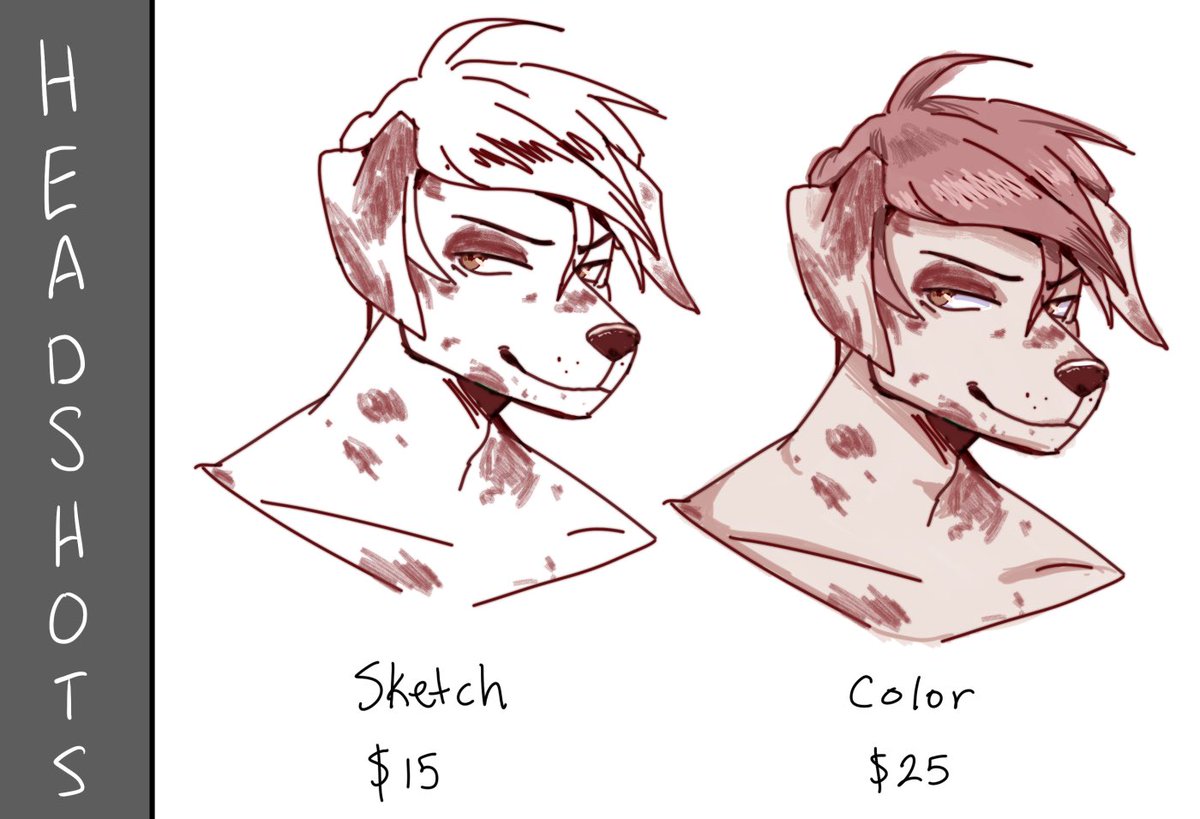 Here we go again: headshot commissions open while I’m on vacation! Comment or DM me if interested! Human OCs also allowed of course. RTs appreciated #commissionsopen #digitalart #furryart