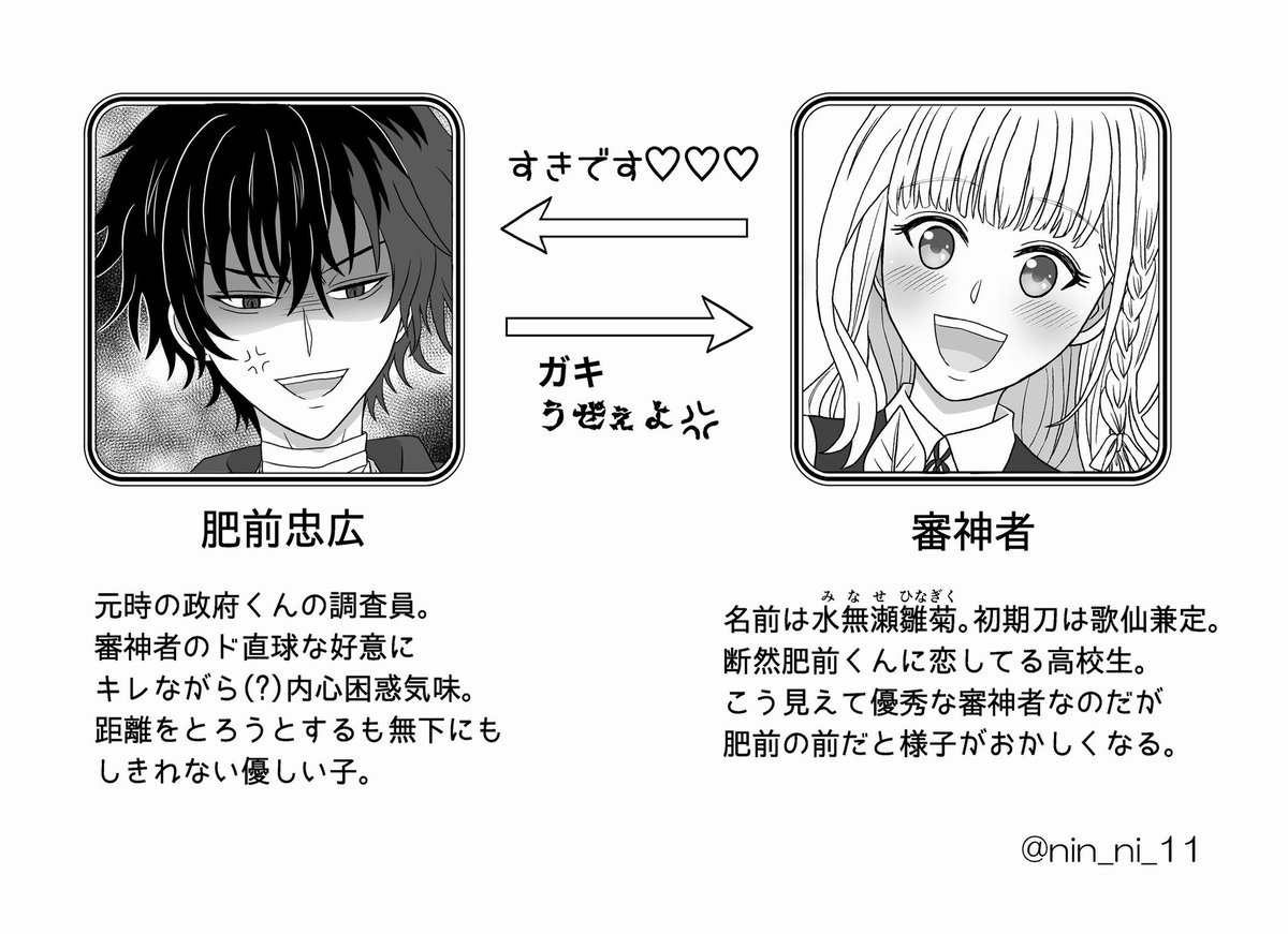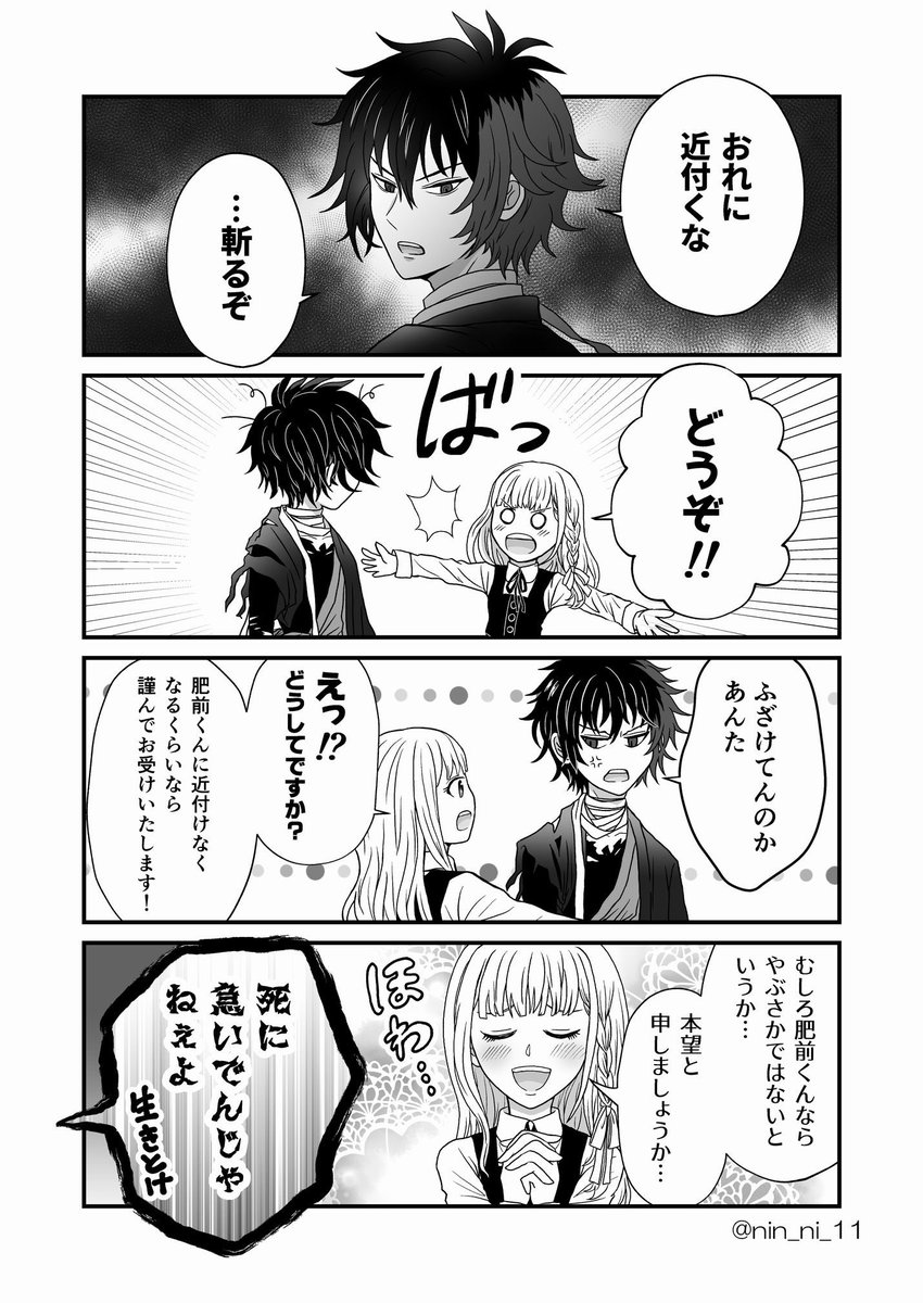 #5月になったのでフォロワーさんに自己紹介しようぜ 伯仲と肥前くんと刀さに♀が好きです。 最近はこちらのひぜさにを描いてます。来月のwebイベントでやりたい放題な出逢い編漫画を展示予定です ※画像は一部抜粋 ↓からその他作品読めます🥳 min.togetter.com/ST68j6X