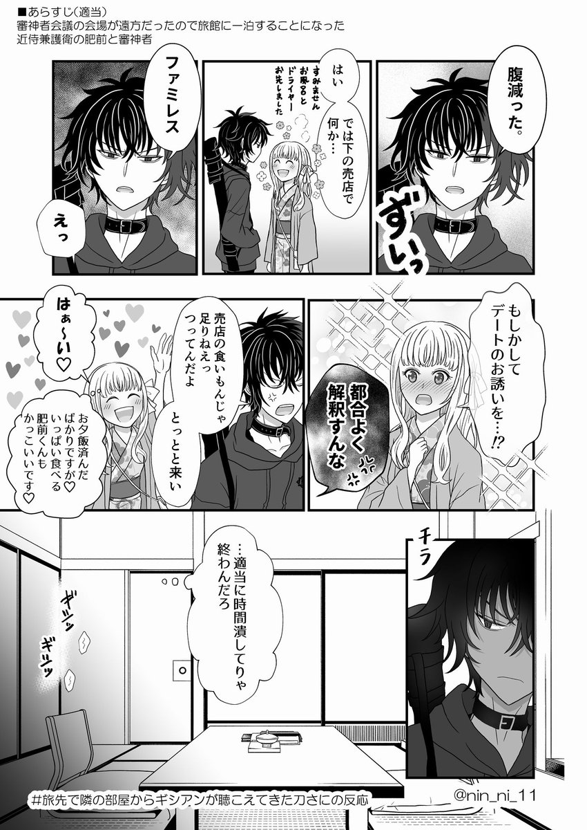 #旅先で隣の部屋からギシアンが聴こえてきた刀さにの反応 ※ひぜさに(今はひぜ←←さに) ※創作女審神者がいます 気付かないうちに守られてるやつです。 (細かいことは気にするな精神でお願いします)