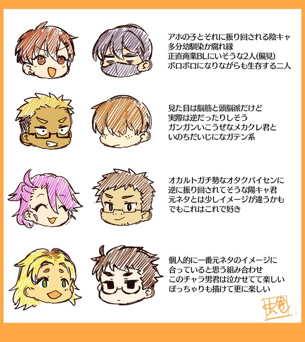 378 1108 私が考えたチャラ男とオタク君で、個人的に好きな組み合わせとざっくりとした関係性です 22/09/05 23:50