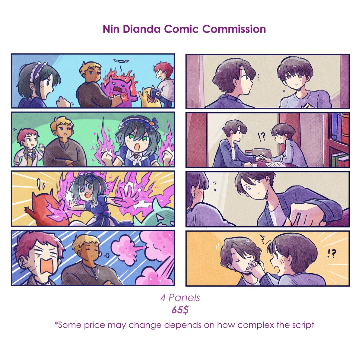 #artistsontwitter Not sure what to put here because I only draw comic and illustration commissions recently 💦 But here's some of them 💕