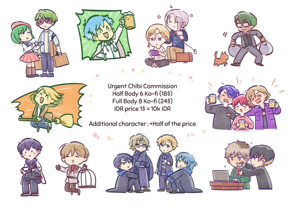 I decided to open emergency chibi commission (with no revision option), if you're interested, you can just DM me 🙏 The other commissions are also open, but I only take 2 slots 🙏 Thank you very much 🙏 twitter.com/nindianda/stat…