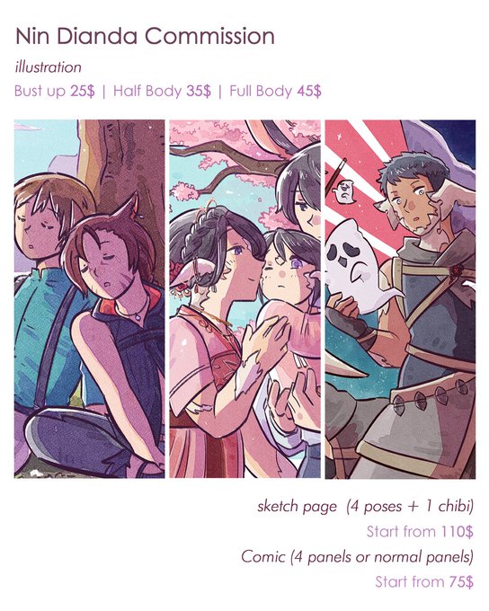 RTs are 🙏💕 🌼 Nin Dianda Commission 🌼 Illustrations | Sketch page | Comic form : tinyurl.com/nincommish2023 sample : nindianda.carrd.co
