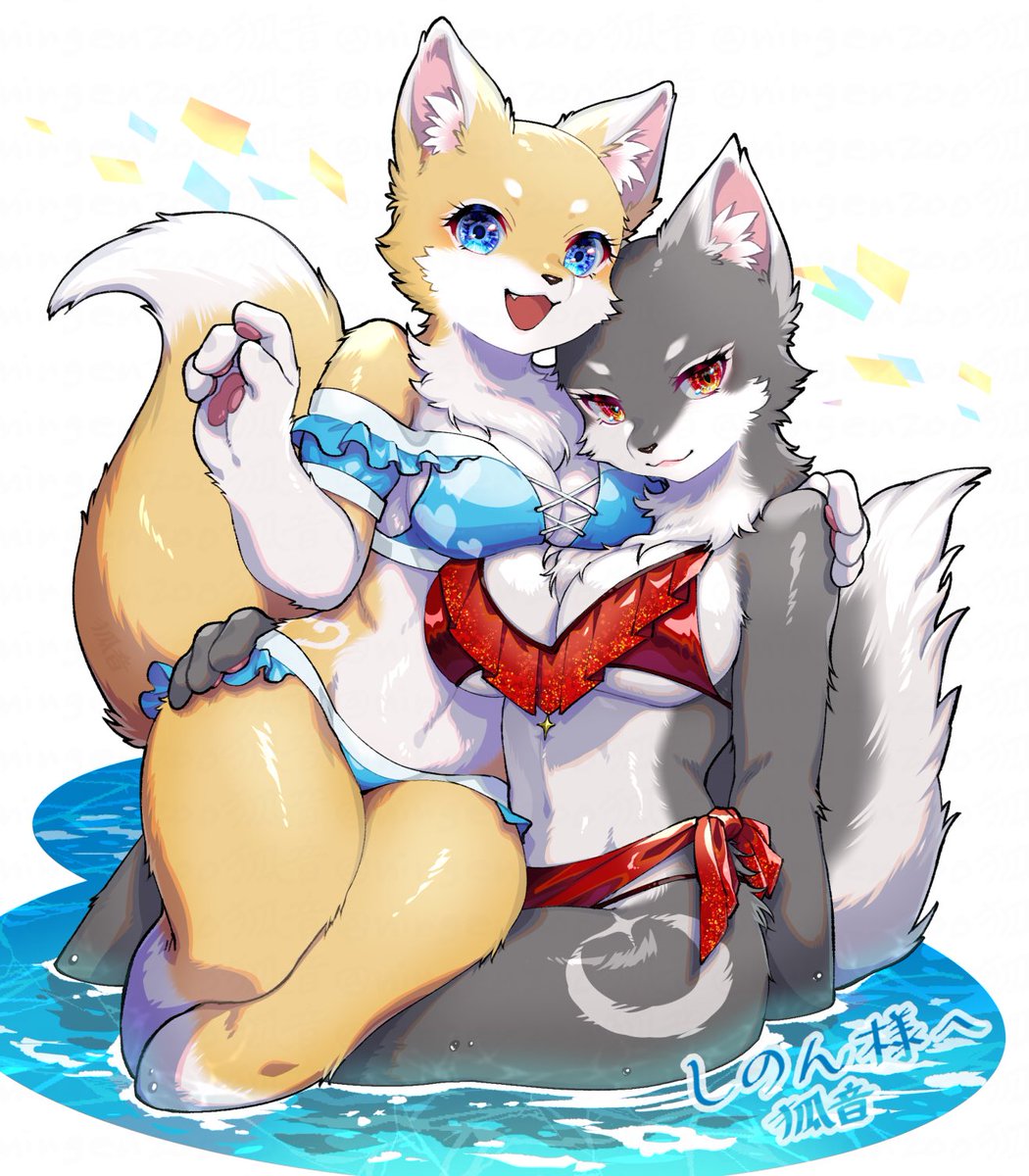 skeb納品しました。黒狐さんに着物っぽい水着をデザインしてみました👙お腹がセクシーポイント。 skeb.jp/@ningenzoo/wor… #Skeb #Commission @skeb_jpより