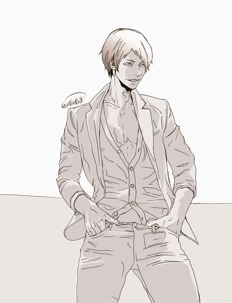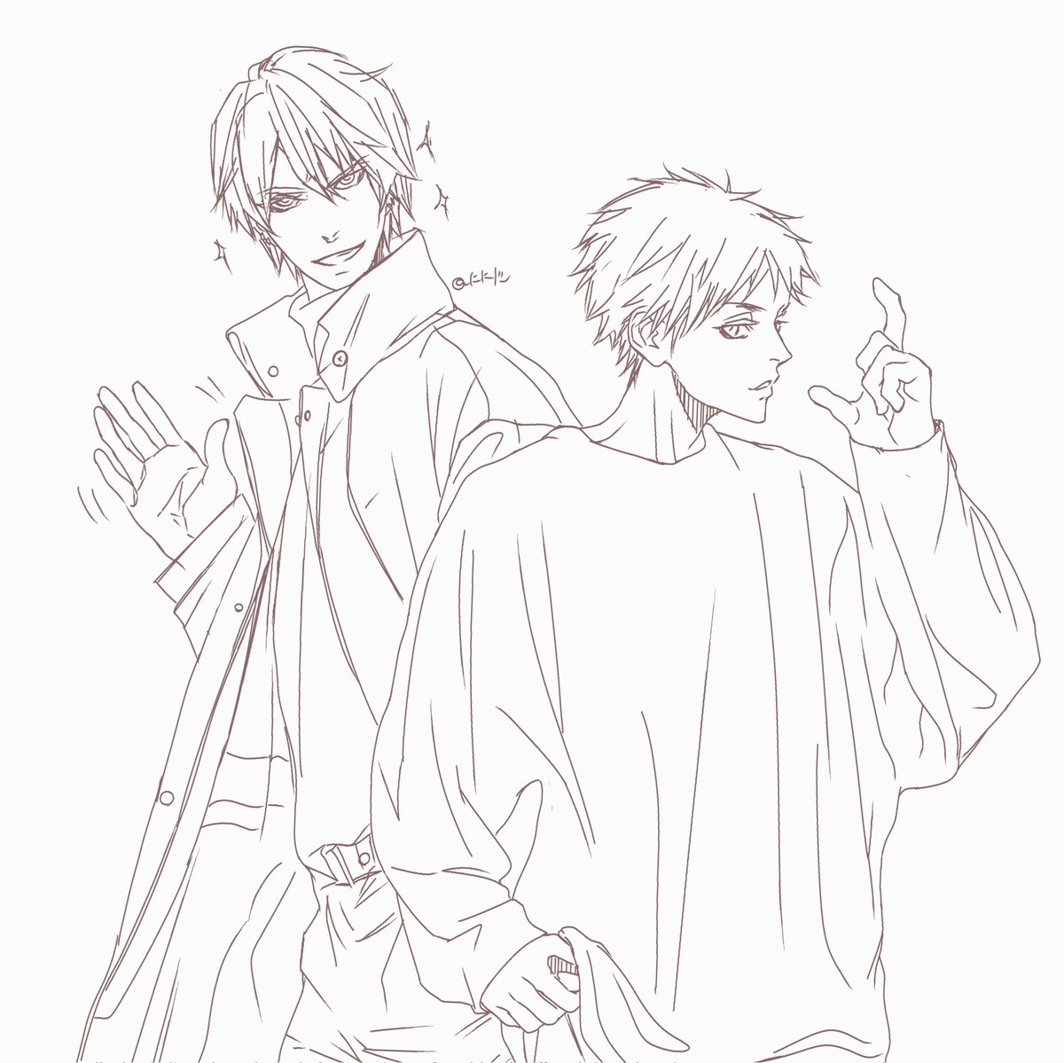 らくがき。 笑顔がうさんくさいひとと ポージングが硬いひと