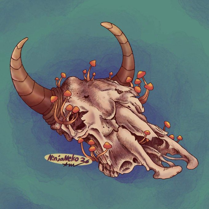 Day 2: mushrooms!! Honestly I just wanted a reason to draw a skull lol #InktoberDay2 #inktober #skull #Halloween #mushrooms #beartober #artistsontwitter