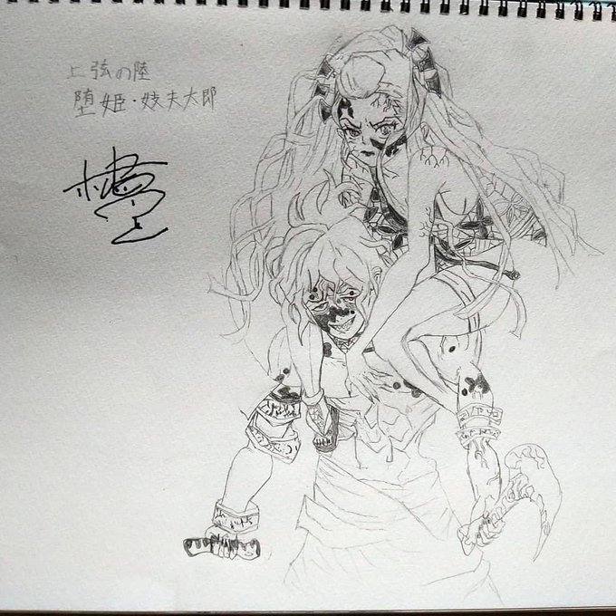 1 3 昨年の夏に描いた上弦の鬼🤭 パート1 上弦の陸:堕姫、妓夫太郎 新上弦の陸:獪岳 上弦の伍:玉壺 上弦の肆:半天狗(僧伯天) #鬼滅の刃イラスト #上弦の鬼 22/01/16 16:52