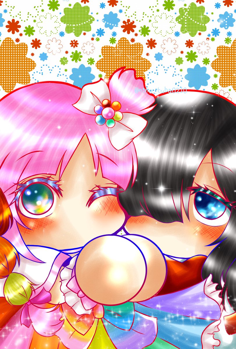 Canバッジgood用夢キャラ絵を描いてみました。 青い髪の娘はぽんさん(@kayanba101328さん )宅の夢キャラ静空ちゃんです。 何故かパワ体なんだ❓(知らんがな) #夢絵 #夢絵師さんと繋がりたい #デジタルイラスト