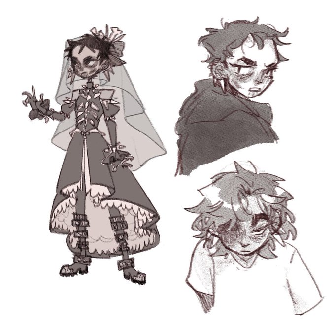 several attempts at drawing harrow and also me putting her in a little goth dress #TheLockedTomb #GideonTheNinth