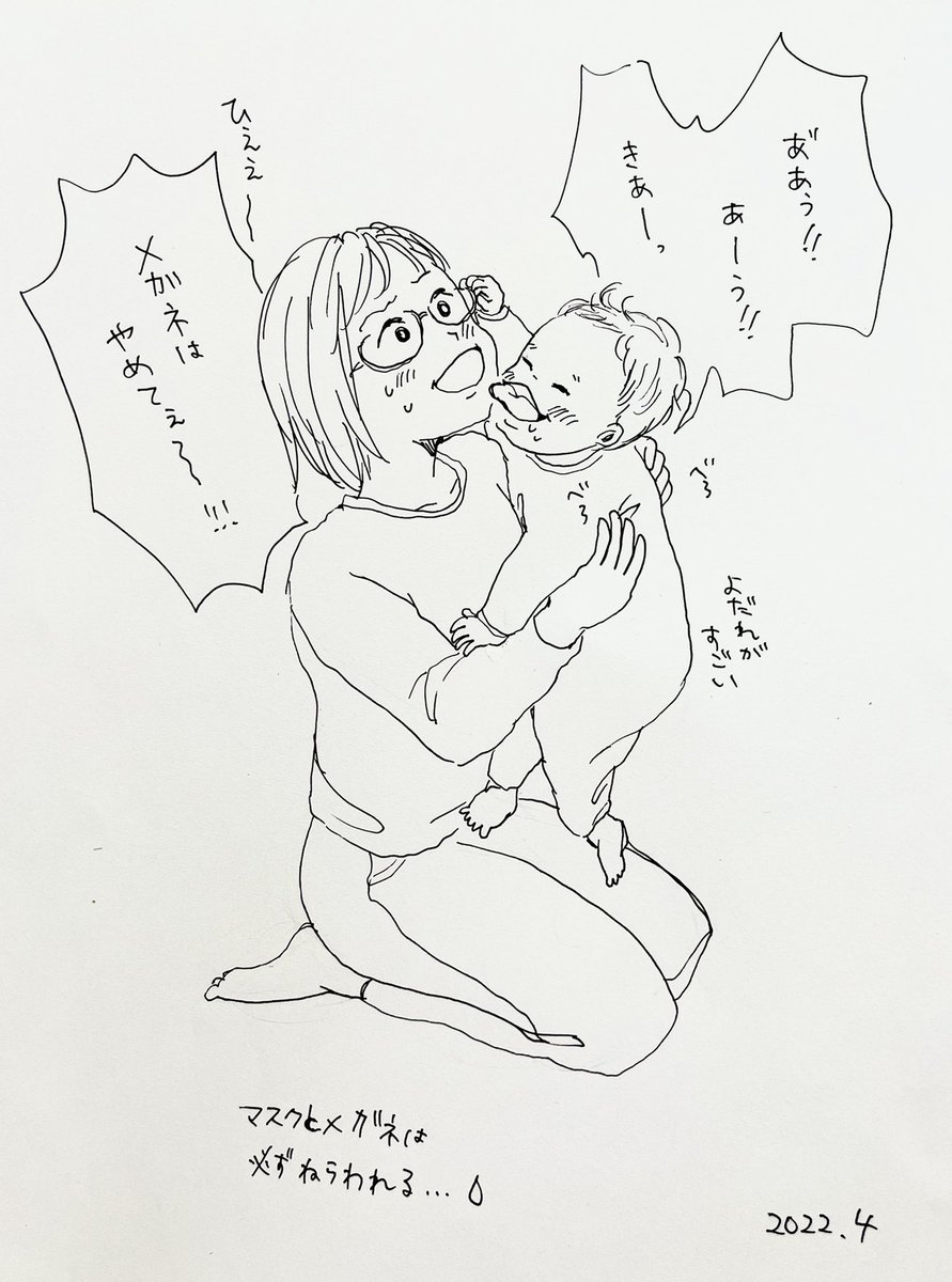 0 12 メガネ・髪の毛・マスク・首周りを狙われる!!あとすごい舐めてくる😂!!! #育児漫画 22/04/26 10:02