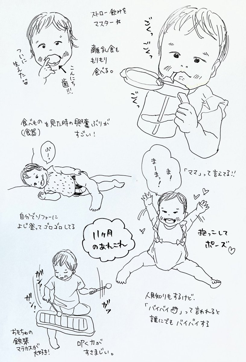 11カ月の頃の記録。 なんやかんや忙しくてもはや断片的な記録しか描けてない😢 #育児漫画
