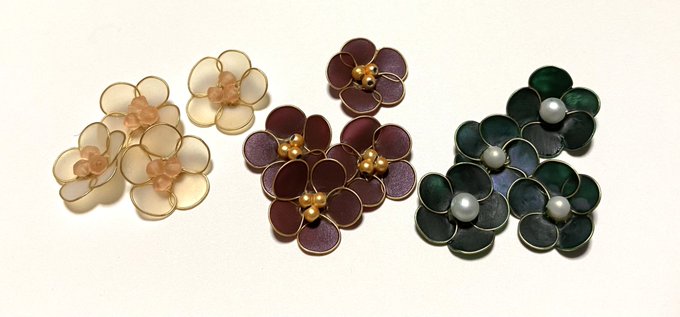 1 5 小さなお花のイヤリング 3色6セット出来上がる予定です! ひっそりとした存在感のお花達です💐 この作品が仕上がったら「にらとりさんち」のガチャページを作ります。 1ガチャ600円の予定です #minne #ディップフラワー #ディップアート #アメリカンフラワー #ワイヤーアート #ワイヤーフラワー 22/12/28 21:14