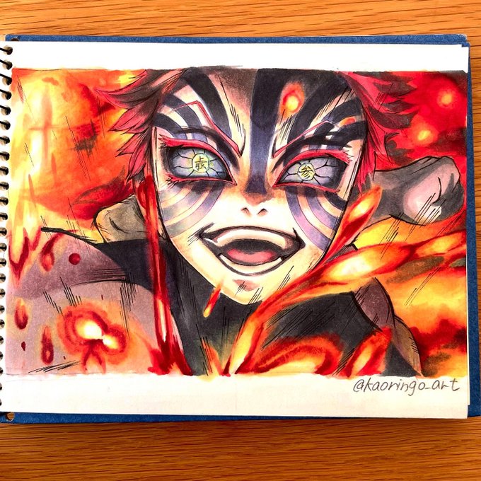 猗窩座描いた♡ #模写 #鬼滅の刃 #猗窩座 #絵描きさんと繋がりたい #コピック #模写イラスト #鬼滅の刃イラスト