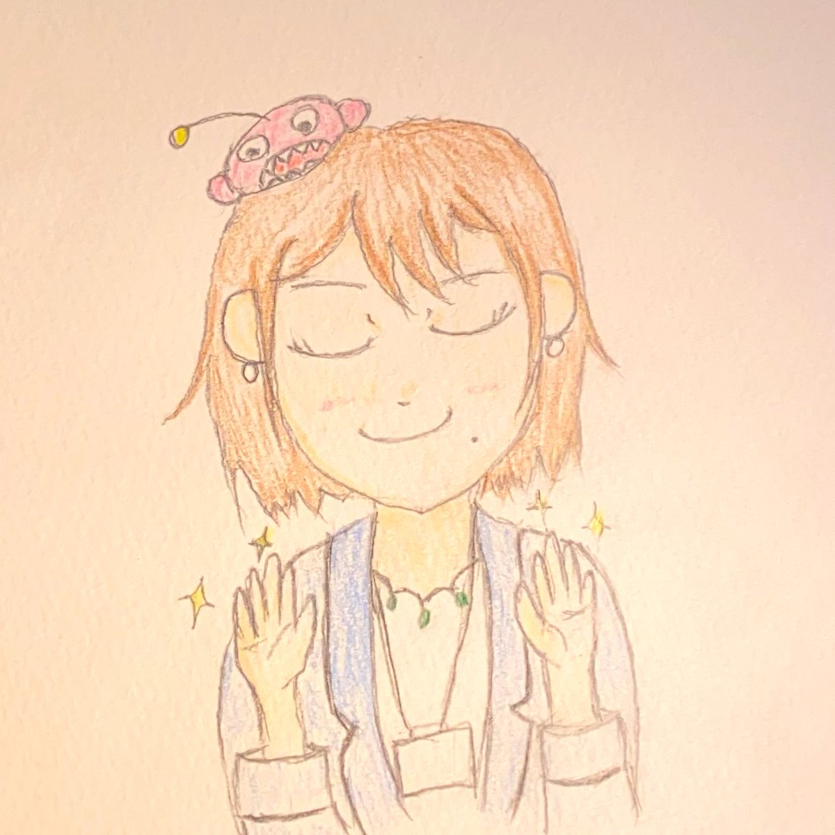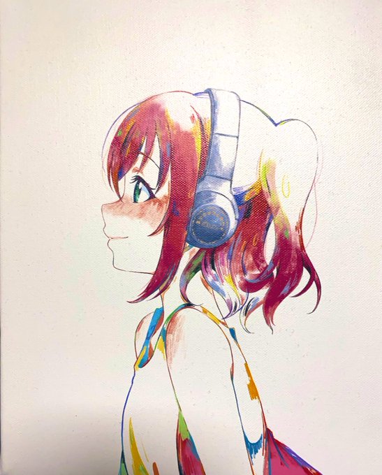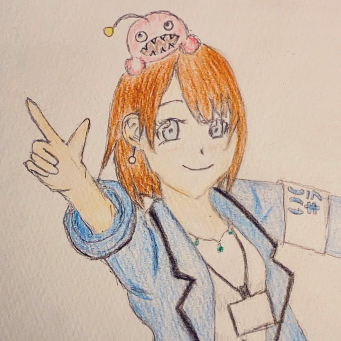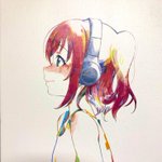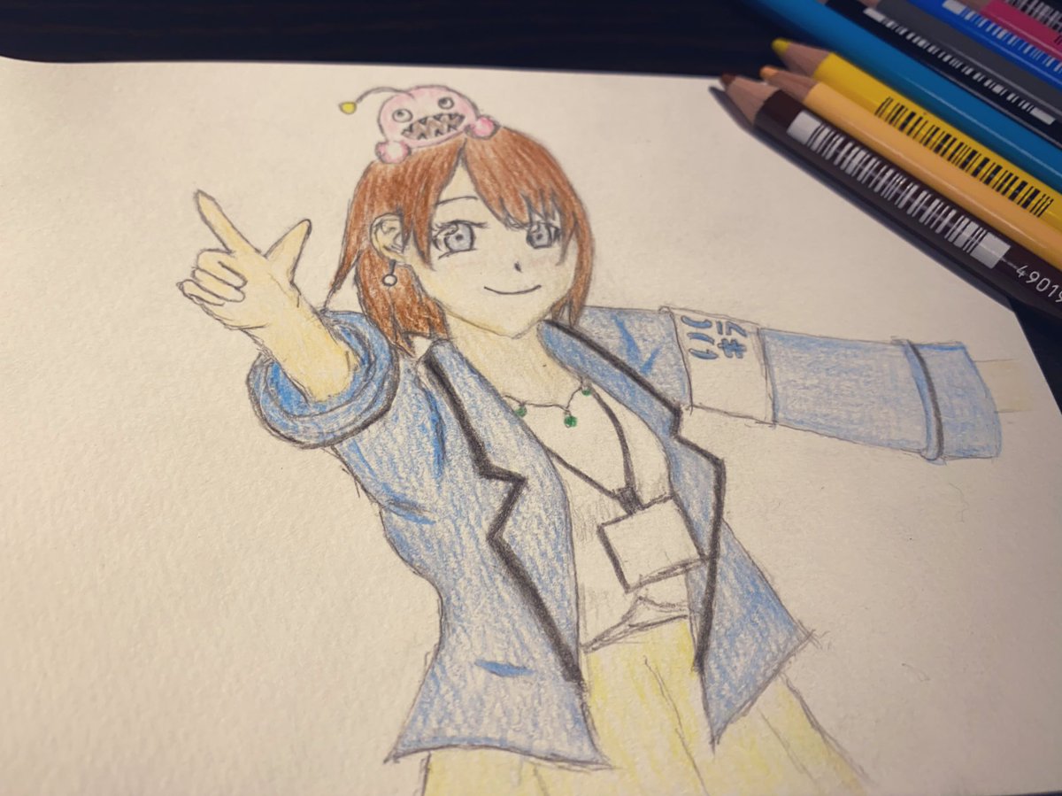壁に飾ってる、ゆの(@_emakaw )さんが描いたルビィのパネル。 線も色彩も見上げる目も本当に素敵で…✨ ルビィちゃんおめでとう🎂🍭 #黒澤ルビィ生誕祭2022 #黒澤ルビィ誕生祭2022
