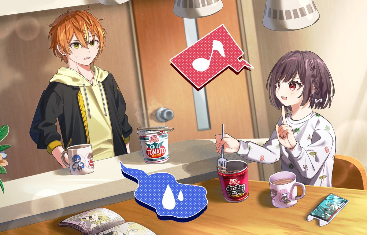 #prsk_fa カップラーメン食べる東雲姉弟の絵