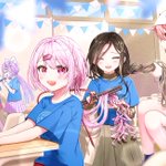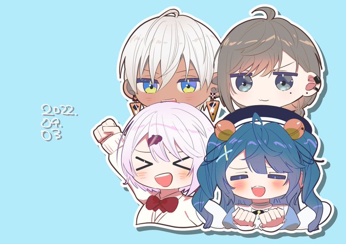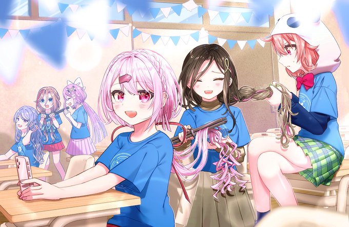 #ふれふれにじフェス2022 #しいなーと #笹の絵 #巴絵 #リツキあーと #上弦画 #なつめぇ画 文化祭当日にヘアメ?的なことをお互いにし合うやつ…のブルーチーム