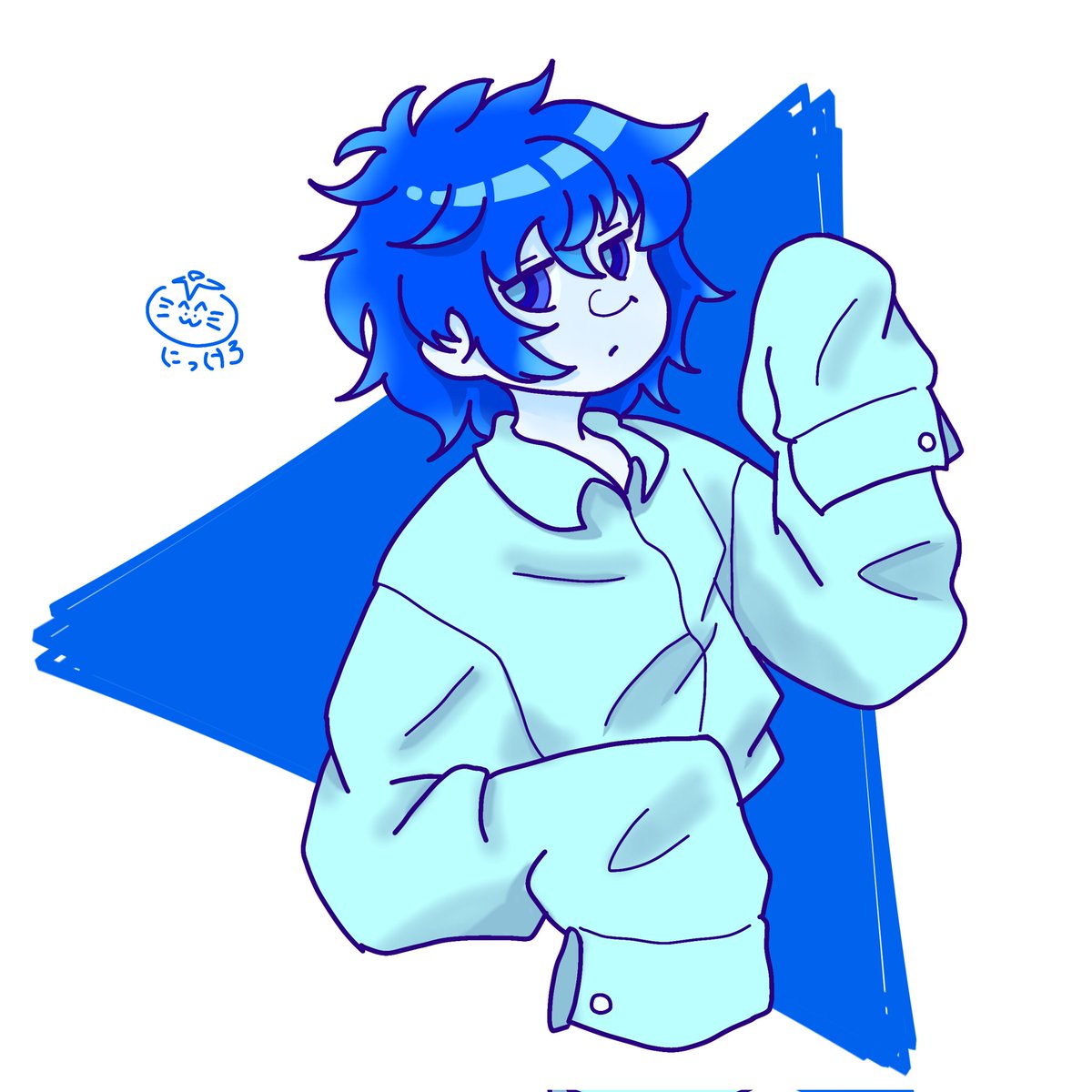 #霜月澪奈の創作っ子 霜月澪奈(@18nGYinKlJqHU1E)さんところの子を描かせていただきました!岶川 水間くんです!! 個人的に青色が好きなので、素敵な髪色だなと思いました! 描かせて頂きありがとうございました!!