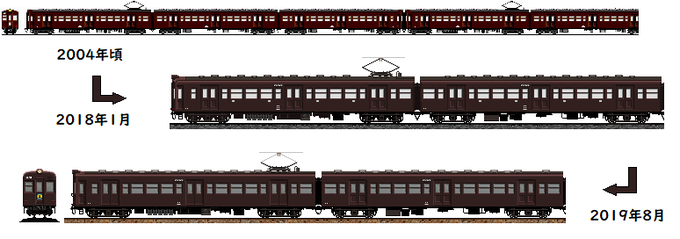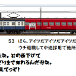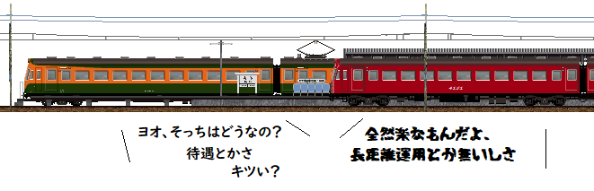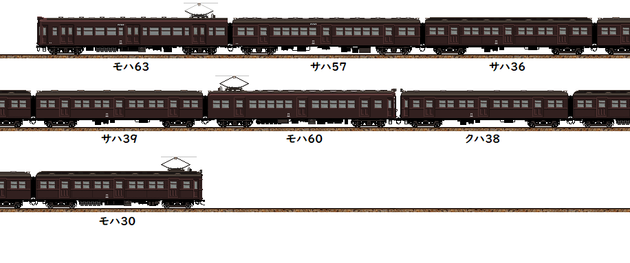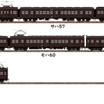ちょっとここで架空鉄道としてのモハ63を振り返る。今世紀初頭の初出だが、この頃はサーバ容量がギリでマグロ絵はチビサイズで出していた。しかし基本的に姿かたちは変わっていない。 #画力変化ビフォーアフター