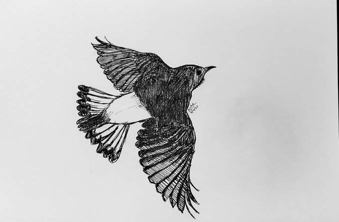 Inktober day 16 - rocket I have tried to depict a bird flying fast like a rocket. Inspired by a friend's click #dailyart #dailydrawings #dailysketches #drawapictureeveryday #practicemakesprogress #birdlife #bird #variablewheatear #artist #artlife #inktober