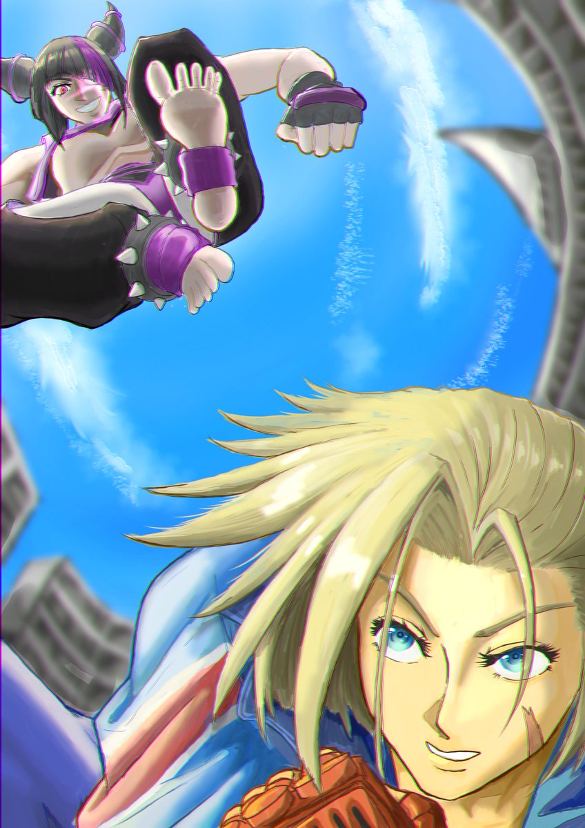 「キャミィVSジュリ」 厚塗り試作品ですがいかがでしょうか。 まだ、手順とかがぐちゃぐちゃで効率悪いですね。 慣れなんでしょうか。 #格ゲーキャラ描こうぜ #みんなで楽しむTwitter展覧会 #絵描きさんと繋がりたい #絵描きさんフォロバ100