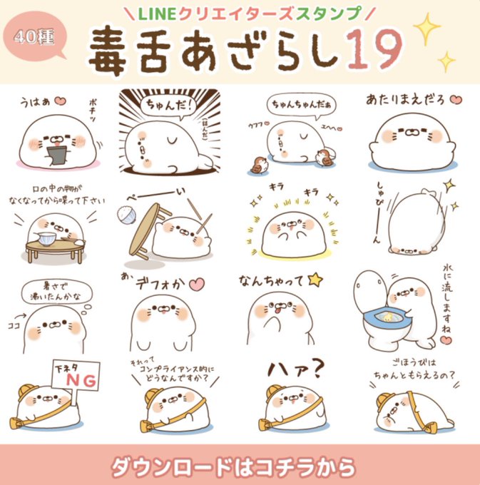 新作スタンプ発売開始いたしました…!今回は、たくさんのご要望をいただいていた、家族で使いやすいverのスタンプになっています(`・ω・´)✨ 🌟LINEスタンプ🌟 毒舌あざらし【家族連絡】 line.me/S/sticker/1901…