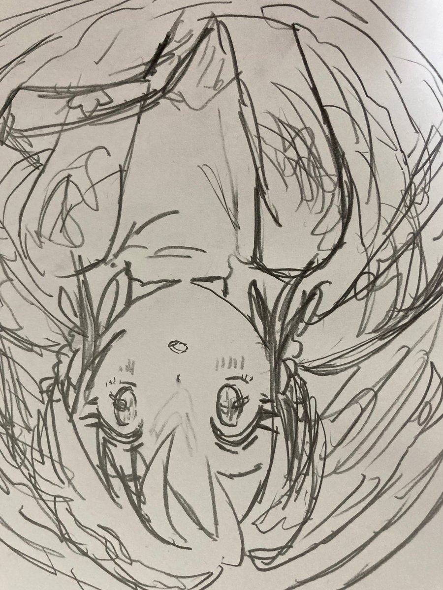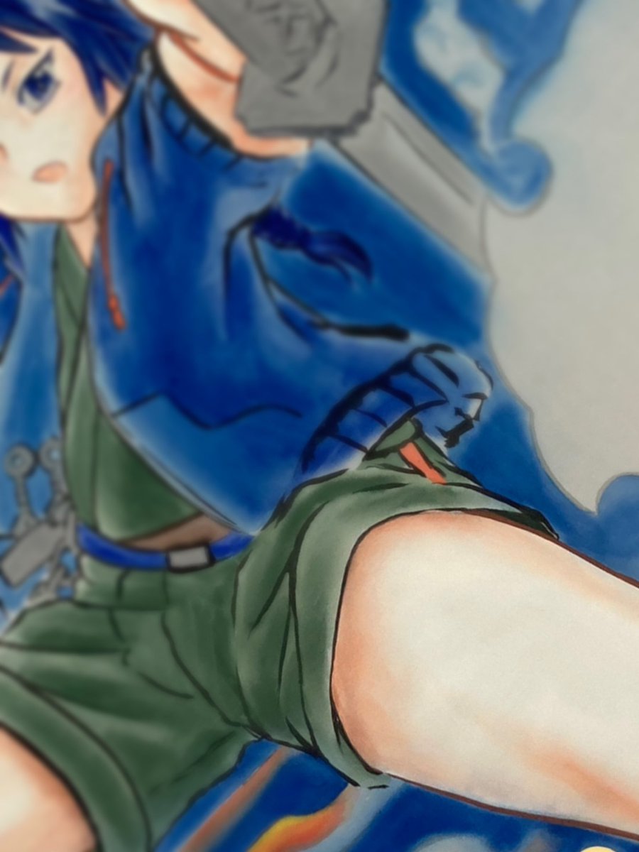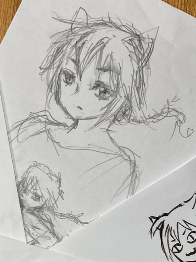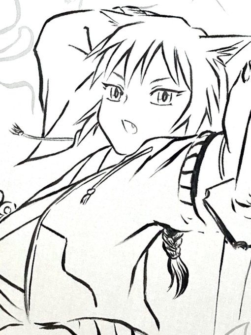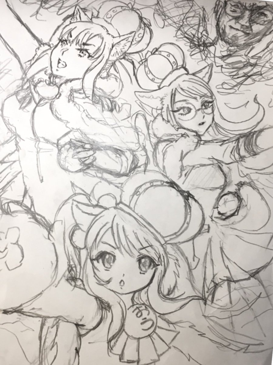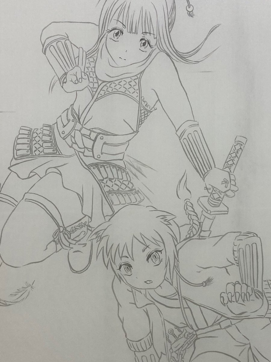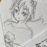 #このタグを見た人はラフ画とその完成絵を見せる そりゃ最初のラフ画がアレなので…完成絵に行き着く迄に細かい修正重ねてたりします…_(┐「ε:)_ アッ… #七宗イラストアート展 にて! 展示中!6/18(日)まで!( ˘ω˘ )