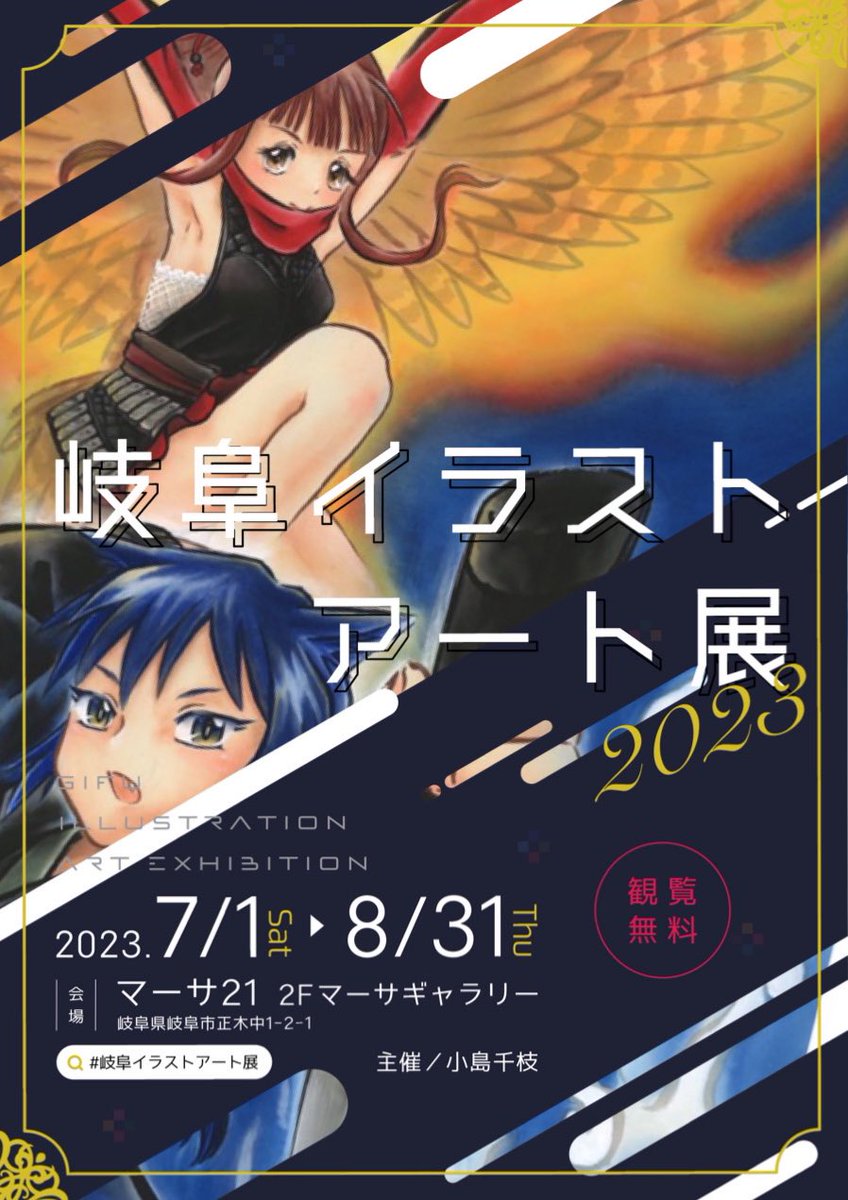 #七宗イラストアート展 絶賛開催中!6/18(日)まで! 是非ご高覧下さい!(=゚ω゚)ノ 同、小島千枝主催 #岐阜イラストアート展 7/1(土)から! 如月れいな主催 #ときめぐり展 7/22(土)から! 由愛乃ナカ主催 #岐阜新文化展R 7/25(火)から! 今年も岐阜の夏はイッソガシイぞ!!! (´-ω-`)