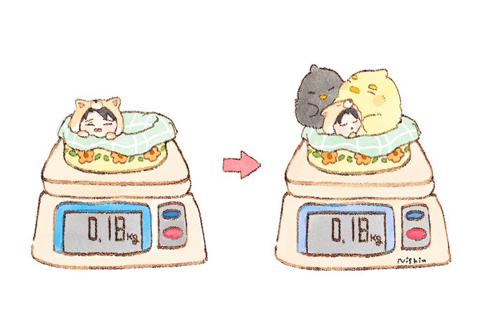 ちいこいぬに配慮した体重測定の図⚖️🤔📝